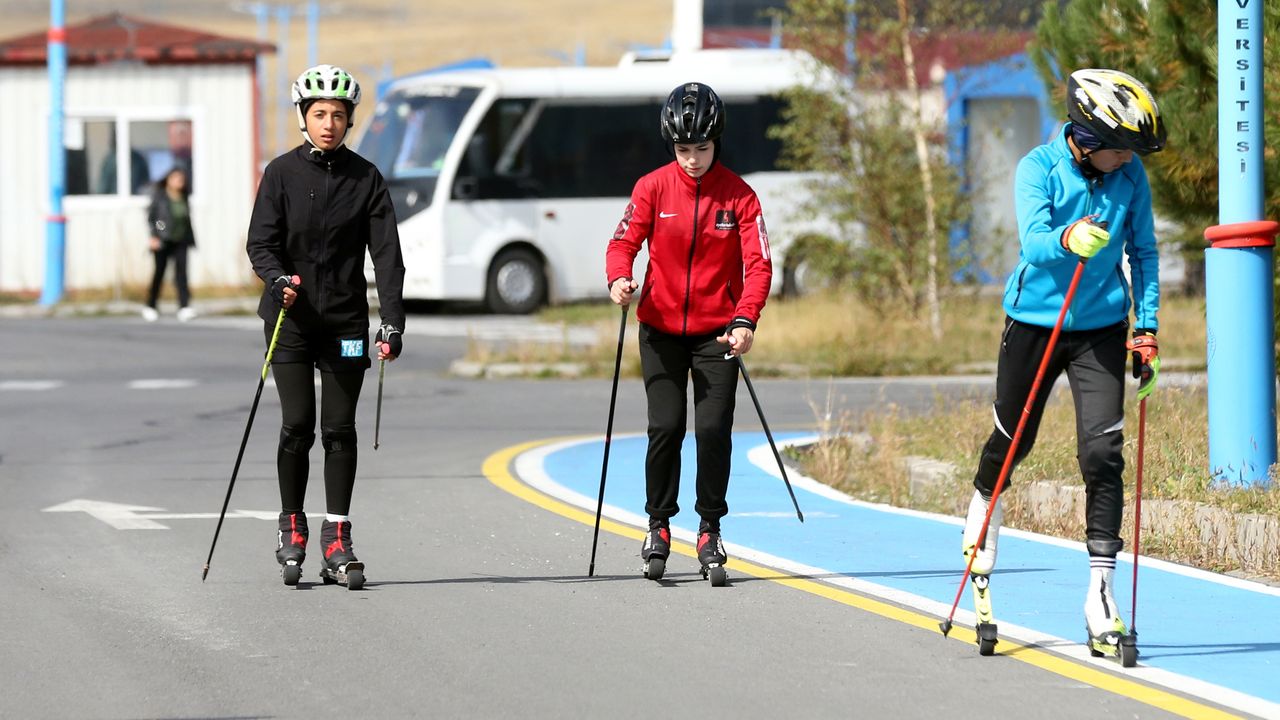 ARDAHAN (AA) - GÜNAY NUH - Kayaklı koşuda 14 ve 16 yaş altı milli takım sporcuları, Ardahan'da yaptıkları tekerlekli kayak antrenmanlarıyla kışa hazırlandı.