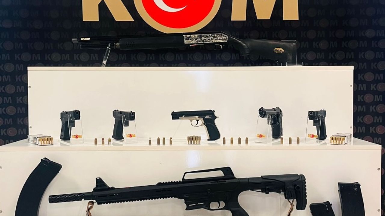 Silah ticaretinin önlenmesine ne yönelik operasyonlarda belirlenen adreslerde arama yapan ekipler, 4 ruhsatsız tabanca, 4 şarjör, 215 fişek, 2 av tüfeği, 16 av tüfeği kartuşu, kurusıkı tabanca, sahte Bulgaristan kimliği, 73,50 gram esrar ve hassas terazi ele geçirdi, 2 şüpheli gözaltına alındı.