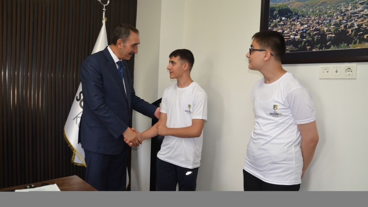 İl Milli Eğitim Müdürü Enver Kıvanç, öğrencilerle eğitim gördükleri okulda bir araya gelerek tebrik etti.