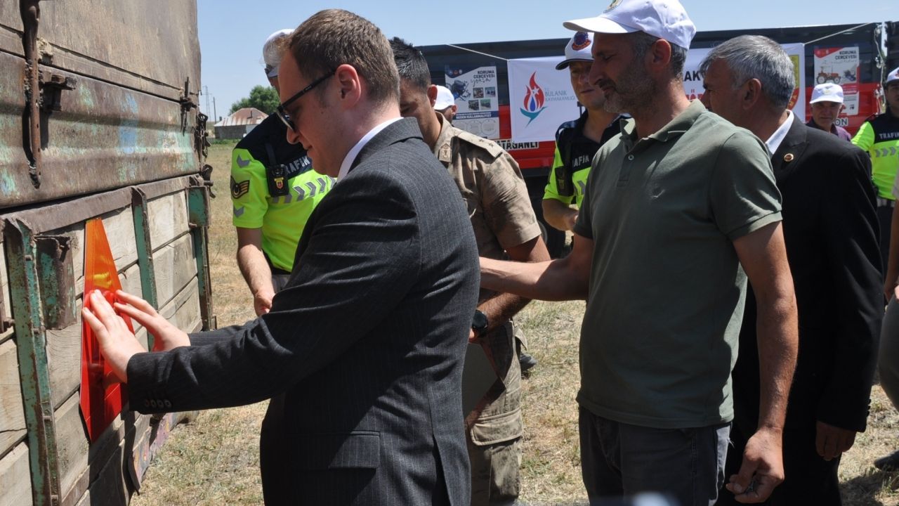 Konuşmaların ardından 400 reflektör traktör römorklarına takıldı, sürücüler trafik kuralları hakkında bilgilendirildi.