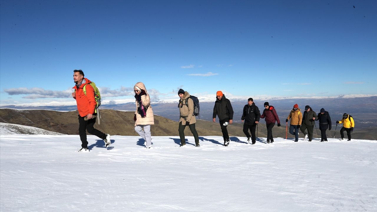 Dernek Başkanı Sedat Özcan, AA muhabirine, 2 bin 645 rakımlı karla kaplı Kurtik Dağı'nın zirvesine çıktıklarını söyledi.