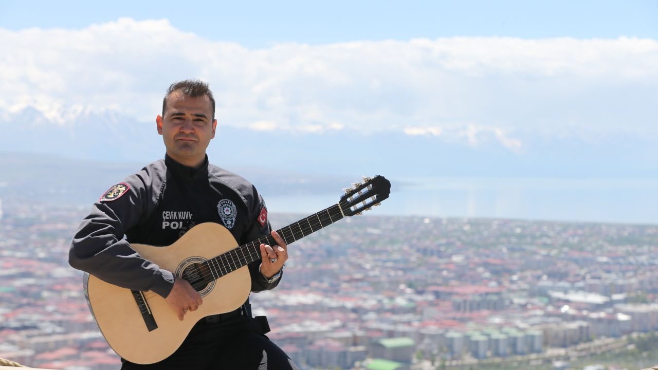 Mesai saatleri dışında kentin tarihi ve doğal mekanlarında enstrüman çalan polis memuru, şarkılarıyla çevresindekilerin hoşça vakit geçirmelerini sağlıyor.
