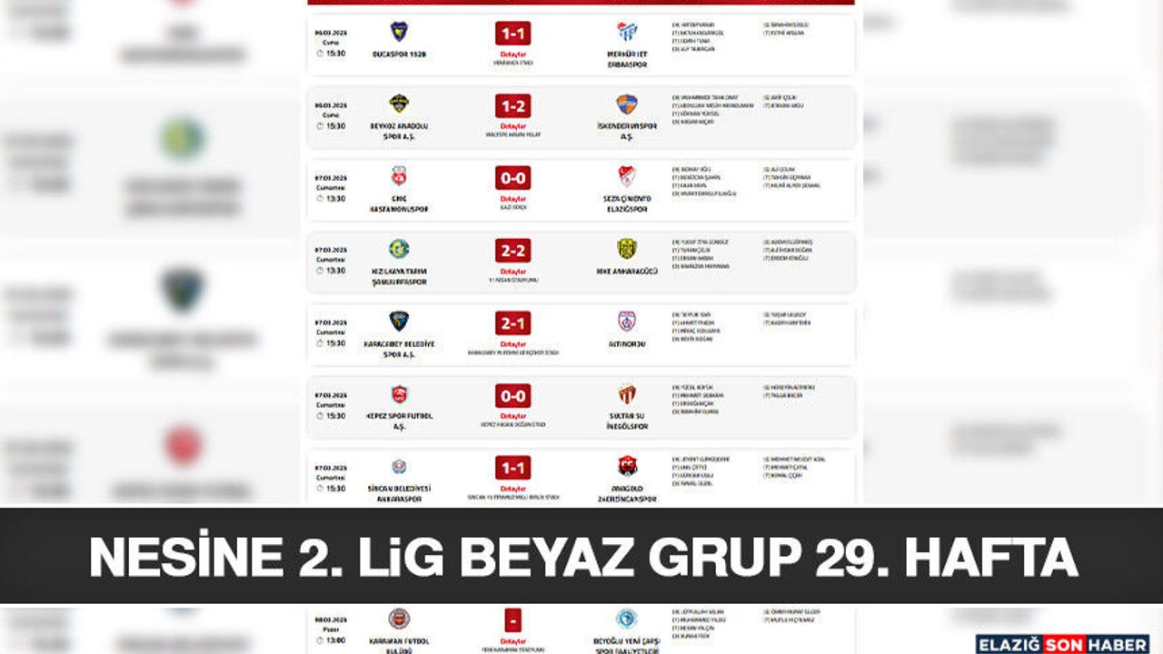 Nesine2. Lig beyaz grupta 29. Hafta; cumartesi günü oynanan 6 karşılaşmayla başladı.
