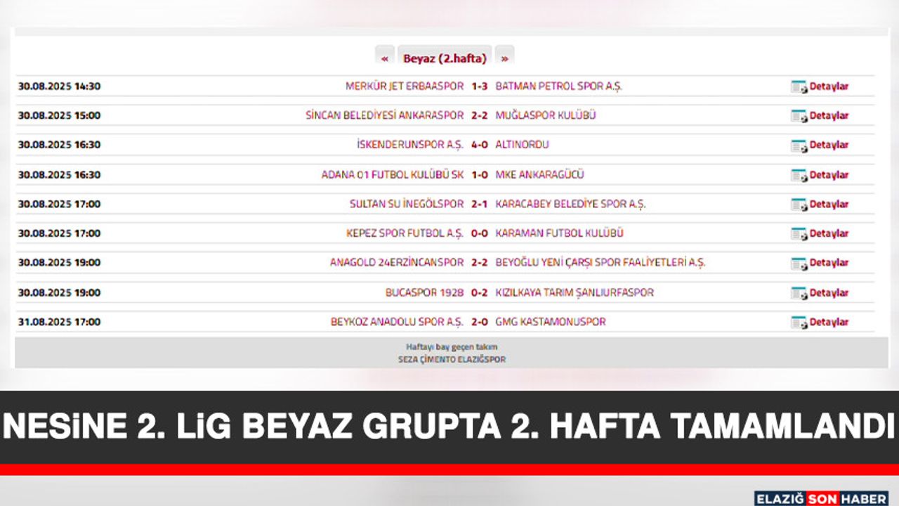 Nesine 2. Lig beyaz grupta 2. Hafta müsabakaları tamamlandı.