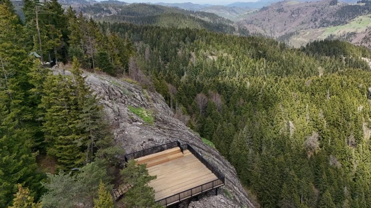 Ordu’nun turizm merkezi Çambaşı Yaylası’nda bulunan ve eşsiz bir manzaraya sahip olan Ablaktaşı, Büyükşehir Belediyesi tarafından yapılan çalışmaları ile yerli ve yabancı turistlerin yeni turizm noktası haline geldi.ORDU (İGFA) - Geçtiğimiz aylarda Büyükşehir Belediyesi tarafından doğaya uyumlu bir şekilde inşa edilen seyir terası ve yürüyüş yolları ile manzaranın tadını çıkarmak isteyenlerin ilk tercihi Ablaktaşı oldu.