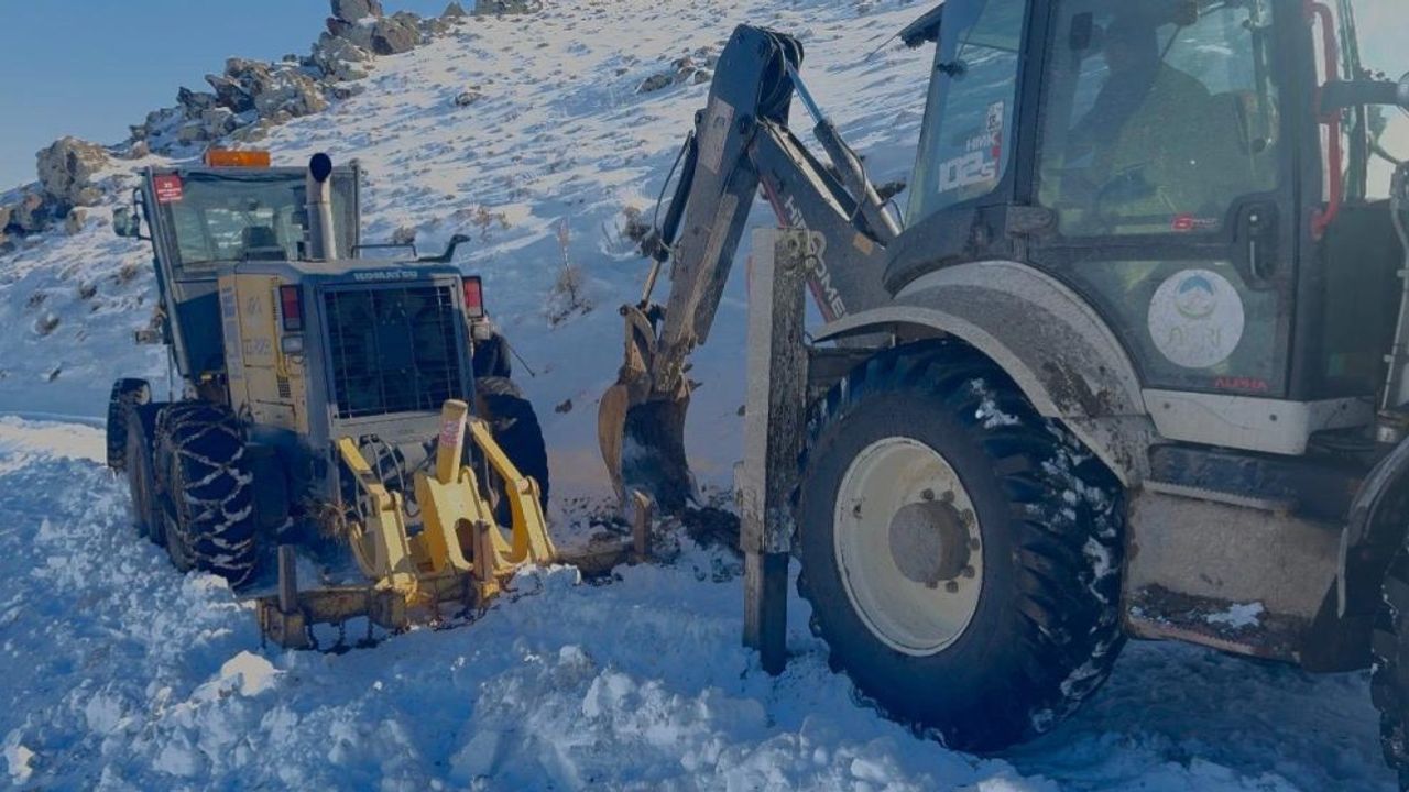 Greyder, bölgeye gönderilen ekipler ve kepçenin çalışmasıyla mahsur kaldığı yerden çıkarıldı.