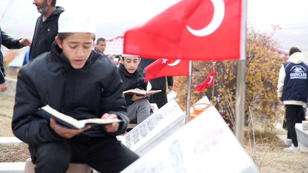 Mahallede yaşayan, içinde hafızların da bulunduğu 33 çocuk ise 33 şehit mezarının başında Kur'an-ı Kerim okudu.