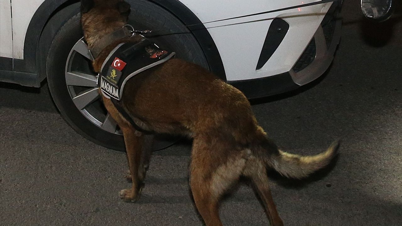 Durdurulan araçlardaki sürücü ve yolcuların kimlik bilgilerini kontrol eden ekipler, bazı araçlarda da dedektör köpek 'Magnum' ile arama yaptı.