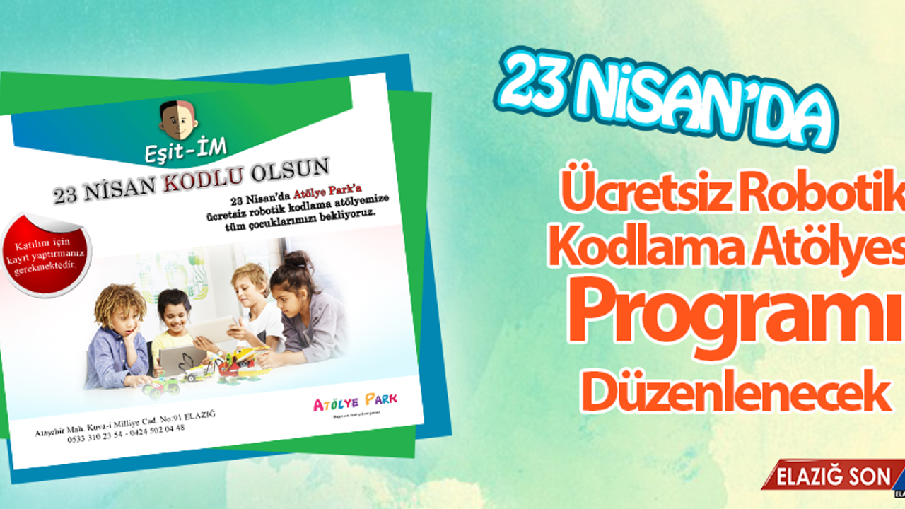 Eşit İmkanlar Projesi kapsamında Elazığ’da Atölye Park ortaklığı ile gerçekleştirilecek olan ücretsiz robotik kodlama atölye programı 23 Nisan’da gerçekleştirilecek.