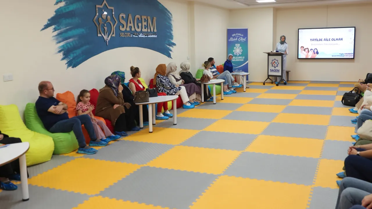 Konya Selçuklu Belediyesi bünyesindeki Selçuklu Aile Gelişim Merkezi (SAGEM), “Aile Yılı” kapsamında aileleri bilinçlendirmeye yönelik etkinliklerine hız kesmeden devam ediyor.KONYA (İGFA) - SAGEM bu kapsamda ailelerin ve çocukların yaz dönemini daha verimli geçirmeleri amacıyla “Tatilde Aile Olmak; İletişim, Etkinlik ve Gelişim Önerileri” adlı bir seminer düzenledi. Katılımın yoğun olduğu seminerin son kısmında katılımcılar grup çalışması da gerçekleştirdi.