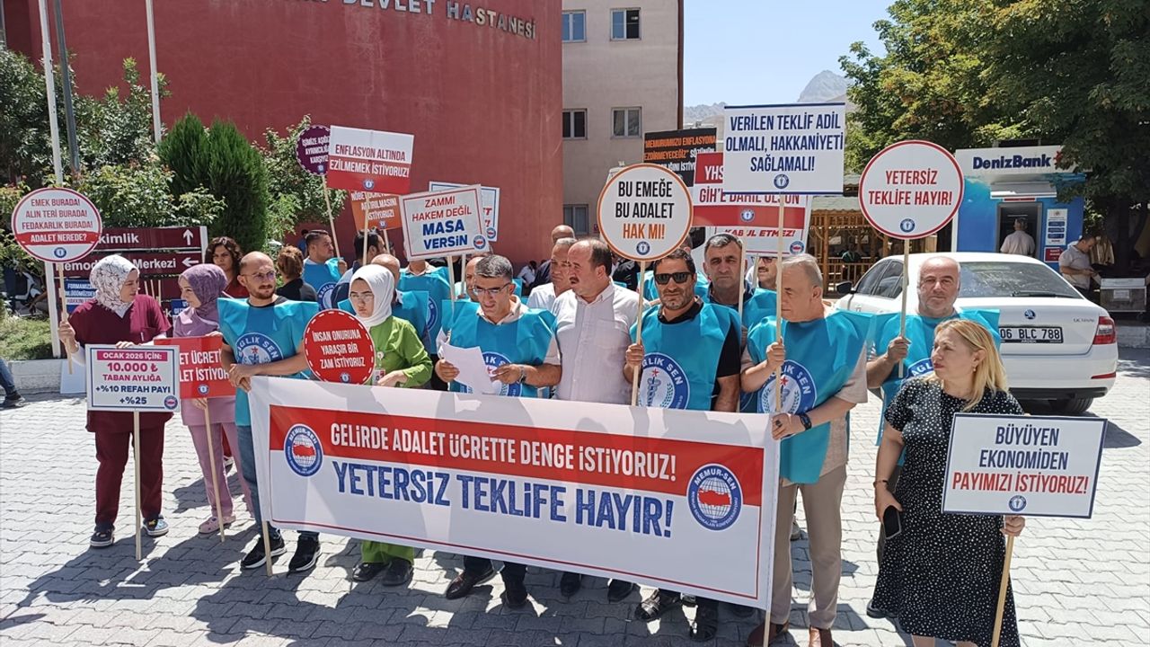 Hakkari Devlet Hastanesi bahçesinde düzenlenen basın açıklamasında konuşan Sağlık-Sen Hakkari Şube Başkanı Nazif Arslan, kamu işveren tarafının teklifini sunduğunu söyledi.