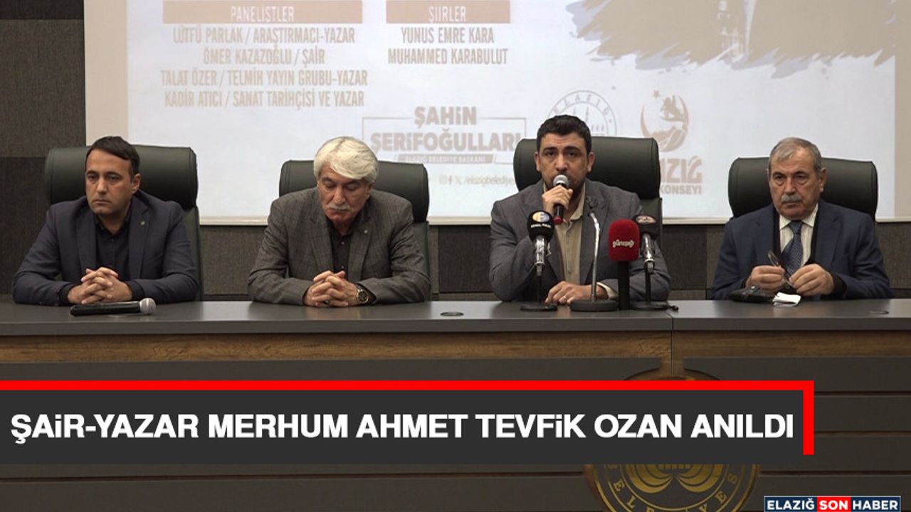 Elazığ’ın yetiştirdiği bilim ve kültür insanı şair ve yazar merhum Ahmet Tevfik Ozan, vefatının 5. Yılında isminin verildiği Ahmet Tevfik Ozan Fuar ve kongre merkezinde düzenlenen panelle anıldı.Program, Elazığ Kent Konseyi Başkan Vekili Suat Kenç ve Elazığ Belediye Başkan Yardımcısı Nazif Bilginoğlu'nun açılış konuşmalarıyla başladı.Elazığ Belediyesi ve Elazığ Kent Konseyi iş birliği ile düzenlenen panelde merhum Ozan’ın hayatından kesitlere ve anılara yer verildi.Sevenleri panelde onu dualarla anarak, hayatını, sanat kariyerini ve topluma yaptığı hizmetleri kapsamlı bir şekilde ele aldı.