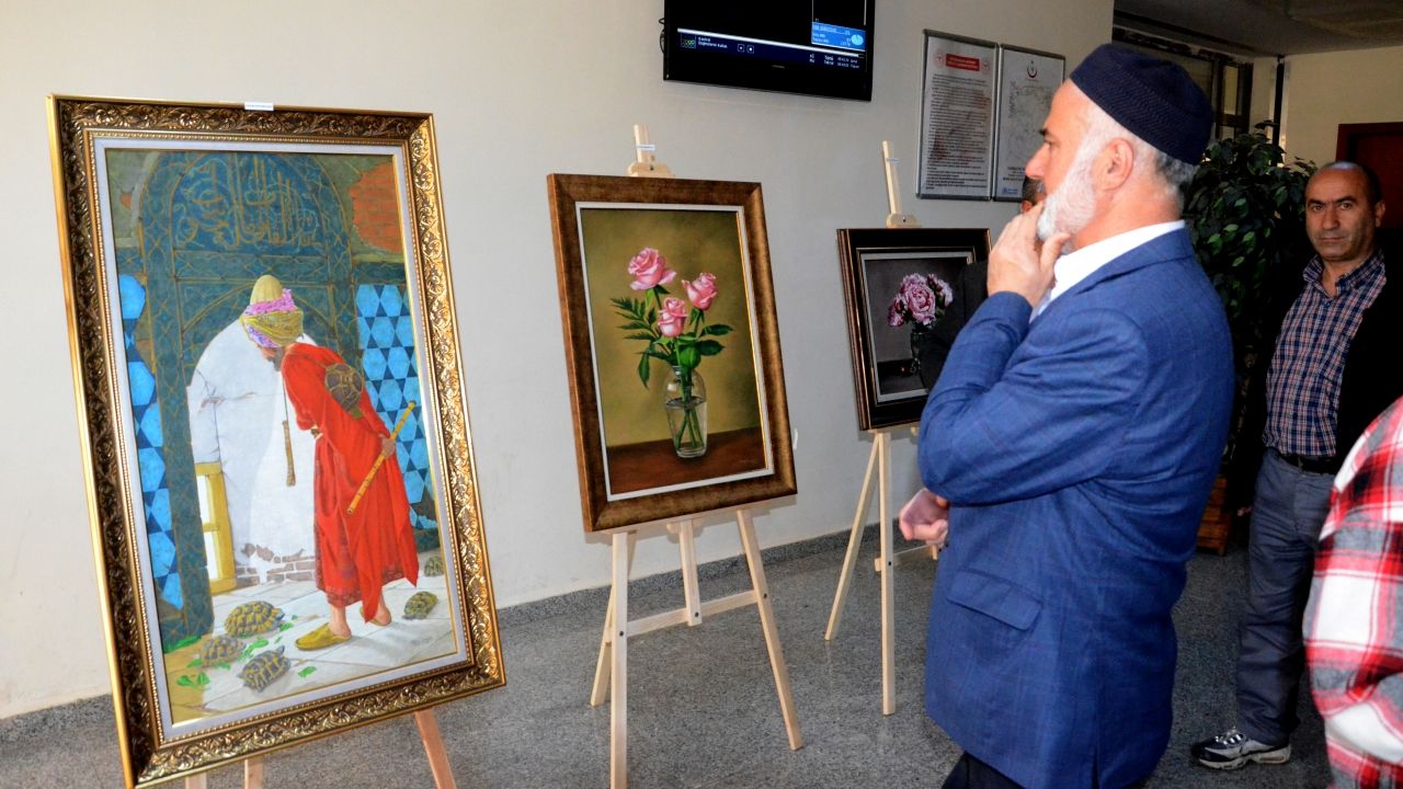 Yaklaşık 7 yıldır resim sanatıyla ilgilenen Karabağ, portre ve manzara olmak üzere yağlı boyadan oluşan 20 çalışmasını hastanede sergiledi.
