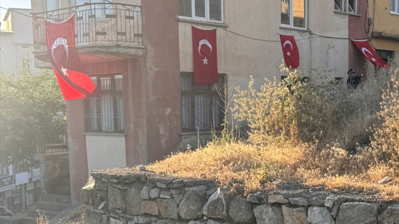 Ailenin yaşadığı binaya Türk bayrağı asıldı.