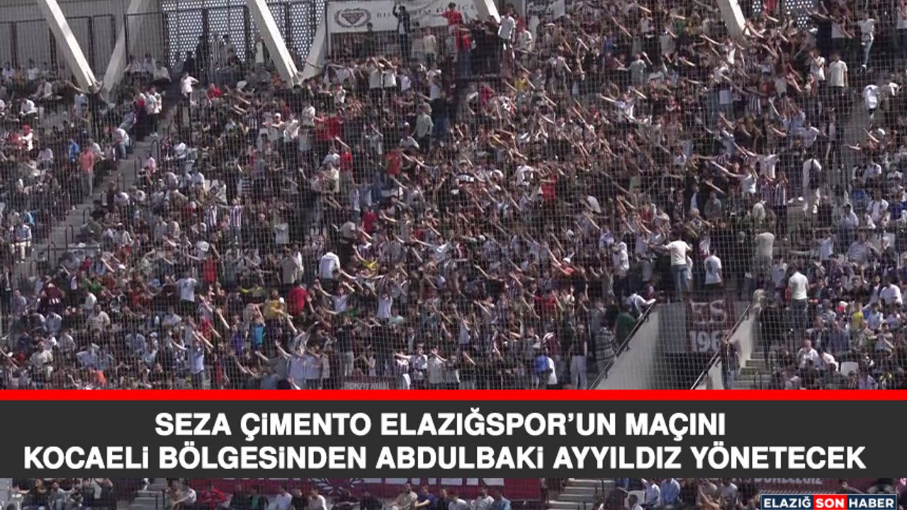 Türkiye Futbol Federasyonu 2. Ligde müsabakaları yönetecek hakem ve görevlileri açıkladı. Yapılan açıklamaya göre, pazar günü oynanacak olan seza çimento Elazığspor-Adana 01 FK karşılaşmasını Kocaeli bölgesi klasman hakemlerinden Abdulbaki Ayyıldız yönetecek.