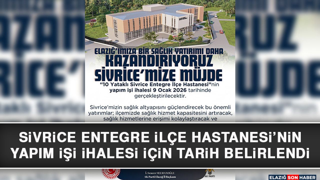 AK Parti Milletvekilleri ve İl Başkanı tarafından yapılan paylaşımda şu ifadelere yer verildi: "10 Yataklı Sivrice Entegre İlçe Hastanesi"nin yapım işi ihalesi 9 Ocak 2026 tarihinde gerçekleştirilecektir. Sivrice'mizin sağlık altyapısını güçlendirecek bu önemli yatırımlar; ilçemizde sağlık hizmet kapasitesini artıracak, sağlık hizmetlerine erişimi kolaylaştıracak ve vatandaşlarımızın daha nitelikli sağlık hizmeti almasına önemli katkı sağlayacaktır. Bu yatırımların hayata geçirilmesinde katkı sunan herkese teşekkür ediyoruz. Aziz Hemşehrilerimize Hayırlı ve Uğurlu Olsun!”