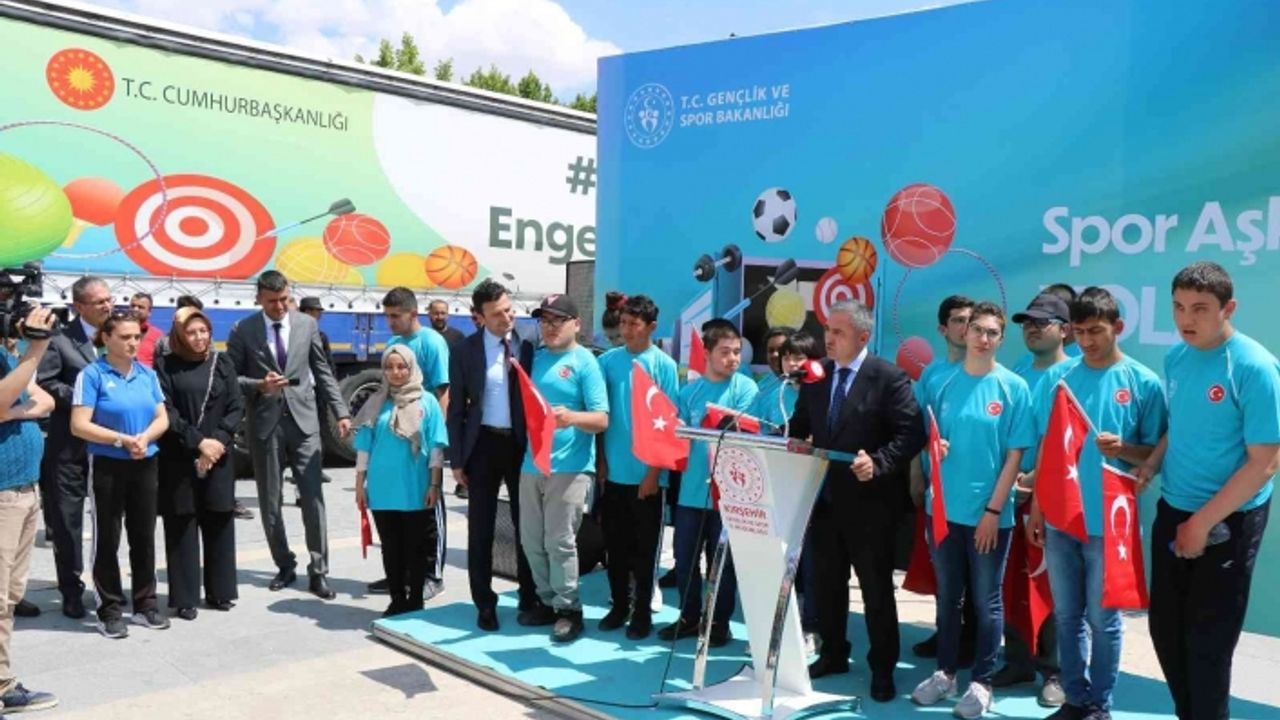 Cumhurbaşkanlığı tarafından desteklenen ’Spor Aşkı Engel Tanımaz’ tırı Kırşehir’de Cacabey Meydanında özel gereksinimli öğrencilerle buluştu.