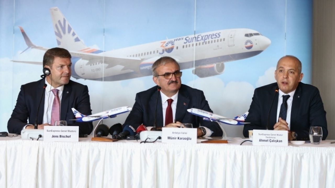 SunExpress'in kurulduğu günden bu yana Türkiye'de ve Almanya'da merkezleri bulunan önemli bir şirket olduğunu dile getiren Karaloğlu, "Türkiye'de 8 ayrı şehre tarifeli direkt uçuşları var. İç turizmin gelişmesine de önemli katkılar veriyor. Şehir ve sefer sayısını artırmak gerekiyor. SunExpress'in batı kadar doğuda da güçlü olması gerekiyor. Turizm çok iyi gidiyor. Mevcut pazarlarla büyümemiz mümkün değil. Onun için yeni pazarlar yaratmamız lazım. 7 Boeing 737 Max uçağımız yerde bekliyor. Bunların da uçuşa kazandırılması önemli. Çin ve Hindistan pazarına direkt SunExpress uçuşlarıyla Antalya'yı büyütmek istiyoruz." dedi.