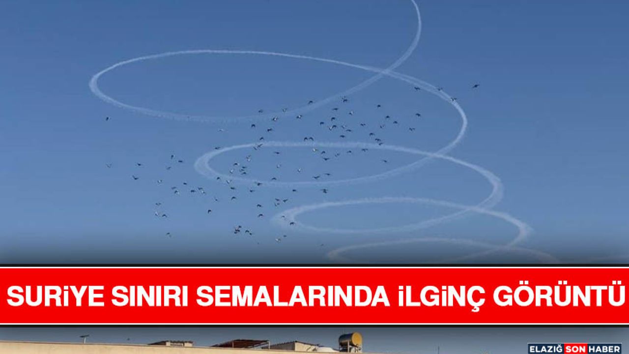 Suriye sınırında yer alan Şanlıurfa'nın Ceylanpınar ilçesinde gökyüzüne bakanlar ilginç bir görüntü ile karşılaştı. Sınır hattı boyunca ilerleyen savaş uçağı olduğu öne sürülen uçağın geride bıraktığı şekiller vatandaşlarda büyük bir merak uyandırdı.