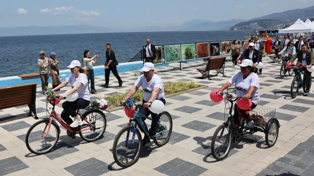 Konuşmalar sonrasında Başkan Mustafa Bozbey ve eşi Seden Bozbey, vatandaşlarla birlikte süslü bisikletlere binerek pedal çevirdi.