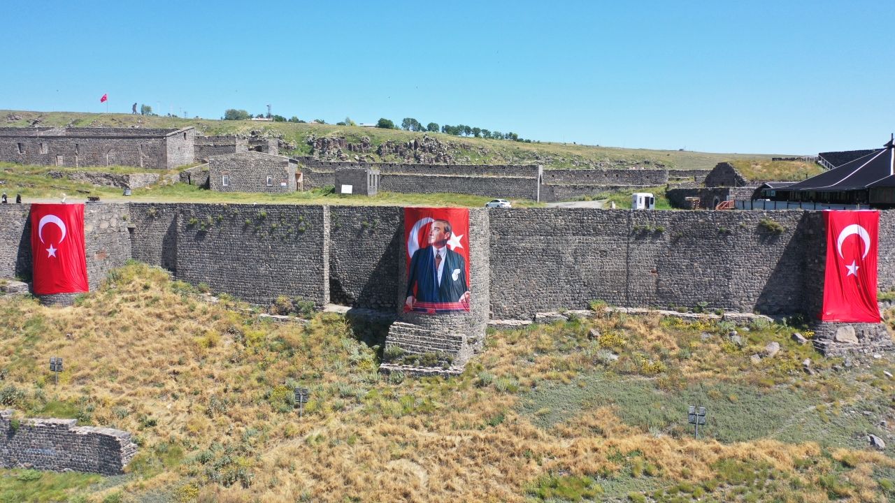 Tarihi Kars Kalesi, Valilik, Belediye, Defterdarlık ile caddeler Türk bayraklarıyla donatıldı.