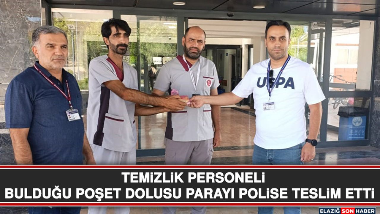 Elazığ Fırat Üniversitesi Hastanesinde bir temizlik personeli, otopark kısmında çalıştığı sırada bulduğu poşet dolusu parayı polise teslim etti.