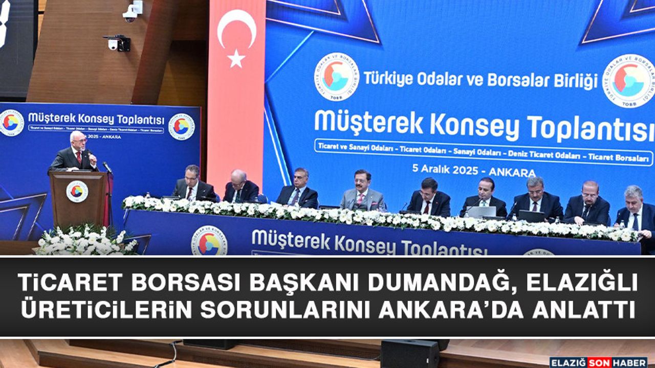 Başkan Dumandağ, Elazığ’ın tarımsal kalkınması için Ankara nezdinde yürütülen girişimlerin devam edeceğini belirterek; “Çok önemli ve anlamlı bir toplantıya katıldık. Toplantıda Konsey üyelerimiz ile birlikte tarımda yaşanan bölgesel sıkıntıları dile getirme fırsatımız oldu. Burada üreticilerimizin ve çiftçilerimizin sorunlarını en üst mercilere aktardık. Zirai don olaylarında olduğu gibi şap hastalığından etkilenen üreticilere destek verilmesi, Besicilere arpa desteğinin artırılması, Toprak Mahsulleri Ofisi’nin fabrikalara hammadde desteği sağlaması ve nakliye maliyetlerini düşünerek bu desteğin en yakın noktadan verilmesi, tarımsal üretim çeşitliliğinin artırılması adına Kuzova ve Uluova Sulama projelerinin bir an önce tamamlanması gibi sorunlar ve çözüm önerilerini anlatma fırsatımız oldu. Biz Elazığ Ticaret Borsası olarak üreticimizin sesini en doğru şekilde duyurmaya devam edeceğiz. Sorunları çözüme kavuşturmak için bizzat takipçisiyiz.” şeklinde konuştu.