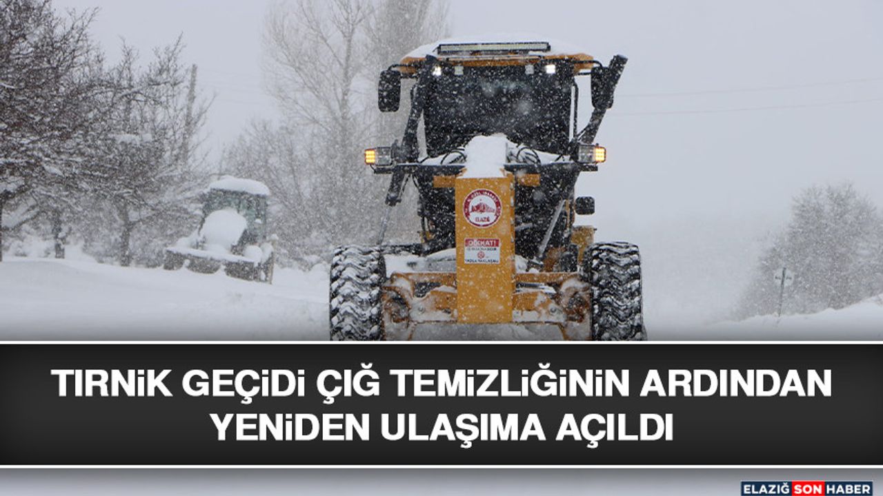 Elazığ İl Özel İdaresi karla mücadele ekipleri, Palu ilçesine bağlı Tarhana Köyü’nde çığ düşmesi sonucu ulaşıma kapanan Tırnik Geçidi’nde temizlik çalışması gerçekleştirdi.