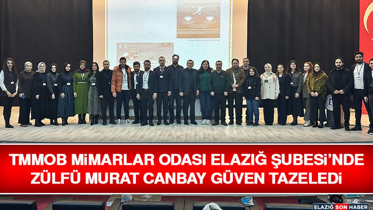 TMMOB Mimarlar Odası Elazığ Şubesi’nin 10. Olağan Genel Kurulu ve ardından yapılan seçim süreci üyelerin yoğun katılımıyla tamamlandı. 24 Ocak 2026 tarihinde gerçekleştirilen Genel Kurulun ardından, 25 Ocak 2026 Pazar günü yapılan seçimlerde Zülfü Murat Canbay, üyelerin oylarıyla ikinci kez TMMOB Mimarlar Odası Elazığ Şubesi Başkanlığına seçildi.
