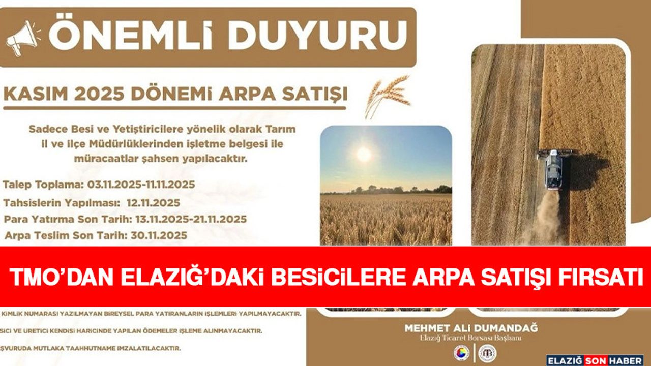 Elazığ’daki besiciler, satış koşulları ve başvuru süreciyle ilgili detaylı bilgilere Elazığ Ticaret Borsası veya Tarım Müdürlükleri aracılığıyla ulaşabilecek.