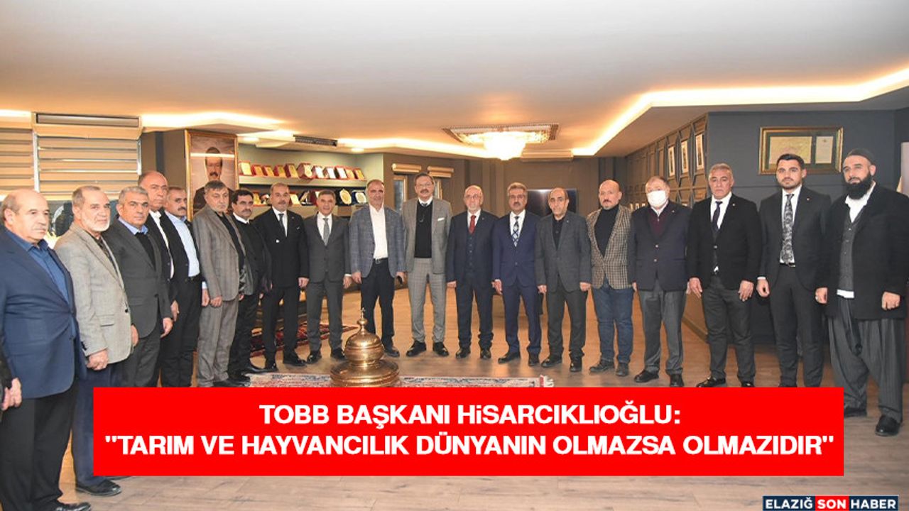 Tarım ve hayvancılığın Elazığ ekonomisinin can damarı olduğunu belirten Hisarcıklıoğlu, "Tarım ve hayvancılık sanayiye de girdi sağlayan bir sektördür. 85 ton üzüm öküzgözü ve boğazkere üzüm üretimiyle, 19 bin ton alabalık, büyükbaş hayvancılıkta da Elazığ merkez durumda. Arıcılıkta çok güçlü, tarıma dayalı sanayi gelişmiş durumda. Borsamız da 1937’den bu tarafa Elazığ’ımızın tüccarı ve sanayicinin hizmetinde. İnşallah gelecek yıl 90 yaşını kutlayacak. Borsamız akredite bir borsa. 5 yıldızlı bir borsa. YÖK ile imzaladığımız protokol kapsamında Fırat Üniversitesi Baskil Meslek Yüksek Okuluna hamilik yapıyorsunuz. Ticaret Borsa ve Konseyinde Mehmet Ali Dumandağ ile beraber çalışıyoruz. Ben orada onun bilgisi ve tecrübesinden istifade ediyorum. TOBB olarak LİDAŞ ve Türkiye Ürün İhtisas Borsasını kurduk. Burada hizmet ediyoruz. Sakın ha sakın tarım ve hayvancılıktan vazgeçmeyin. Zor zamanlar olabilir ama gördüğümüz iki şey, pandemi ve Rusya ve Ukrayna savaşında gördük ki tarım ve hayvancılık dünyanın olmazsa olmazıdır. Çünkü dünyaya iki Türkiye nüfusu ilave oluyor. Her yıl dünyada da yaklaşık bir Türkiye nüfusu kadar az gelirliden orta gelirli gruba insan geçiyor. Bunlar hep tüketecek. Nüfus arttıkça tüketim artacak. Son 10-15 senede dünyada fiyatı en çok artan ürünler tarım ve hayvancılık ürünlerinin fiyatı artmış. İnsan çoğalıyor, insan tarımdan kopuyor. Kopunca da tüketmek durumunda kalıyor. Köyden kopup kente geldi mi tüketmek durumunda kalıyor. Onun için yaptığınız meslek doğru meslektir. Buradan vazgeçmeyin diyorum" ifadelerini kullandı.