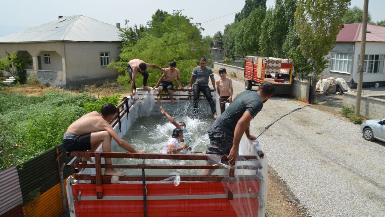 Römorkta yüzen çocuklardan Enver Güler ise "Babamla birlikte tarladaydık. Ona 'beni havuza götür' dedim. Köyde havuz olmadığı için böyle bir yöntem denedik. Römorka çadır serip havuz yaptık. Çok eğleniyoruz. Her gün bu şekilde serinliyoruz." dedi.