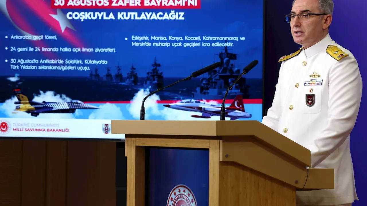 Millî Savunma Bakanlığı, 30 Ağustos Zafer Bayramı ve Türk Silahlı Kuvvetleri Günü’nün 103’üncü yıl dönümünü kutladı. Ankara’da geçit töreni, 24 limanda gemi ziyaretleri, SOLOTÜRK ve Türk Yıldızları’nın gösteri uçuşları ile bando konserleri düzenlenecek.ANKARA (İGFA) - Millî Savunma Bakanlığı, Haftalık Basın Bilgilendirme Toplantısı’nda, 30 Ağustos Zafer Bayramı ve Türk Silahlı Kuvvetleri Günü’nün 103’üncü yıl dönümü kutlamalarına ilişkin detayları paylaştı.