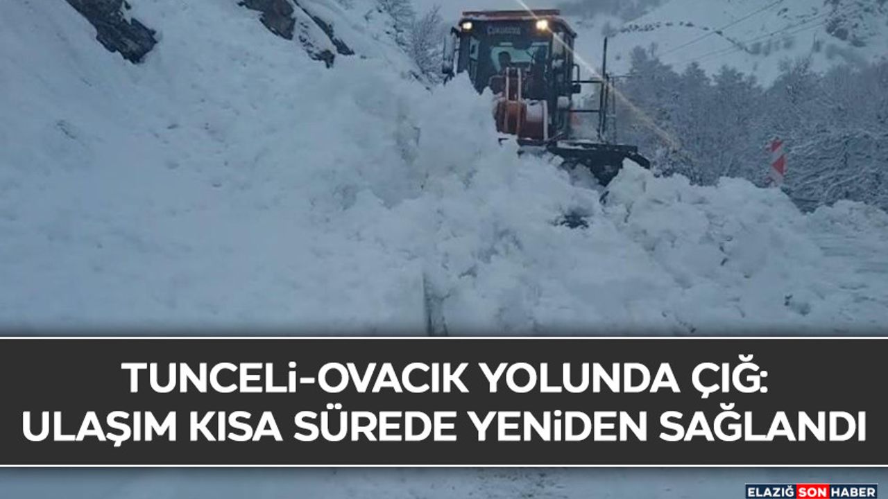 Karayolları İl Müdürlüğü ekiplerinin hızlı müdahalesiyle güzergâh kısa sürede yeniden trafiğe açıldı.Tunceli’nin Ovacık ilçesine ulaşımı sağlayan kara yolunun 44’üncü kilometresinde, Yoncalı köyü mevkiinde çığ meydana geldi. Çığın yola düşmesiyle birlikte ulaşımda kısa süreli aksama yaşanırken, durumun bildirilmesi üzerine Karayolları İl Müdürlüğü ekipleri bölgeye sevk edildi. Ekiplerin iş makineleriyle gerçekleştirdiği hızlı ve koordineli çalışmalar sonucunda çığ temizlenerek yol güvenli hale getirildi. Yapılan kontrollerin ardından güzergah yeniden ulaşıma açılırken, bölgede muhtemel risklere karşı tedbirlerin sürdüğü bildirildi.
