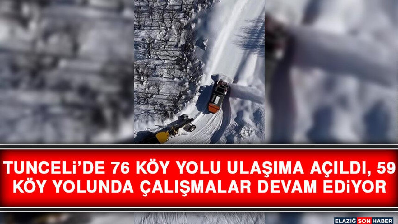 Tunceli’de etkisini artıran kar yağışı, özellikle yüksek kesimlerde ve kırsal bölgelerde ulaşımı olumsuz etkiledi. Bu çerçevede vatandaşların mağduriyet yaşamaması adına kent genelinde ulaşıma kapanan 135 köy yolunda yapılan çalışmalar sonucunda 76’sının ulaşıma açıldığı, 59 köy yolunda ise çalışmaların sürdüğü öğrenildi.