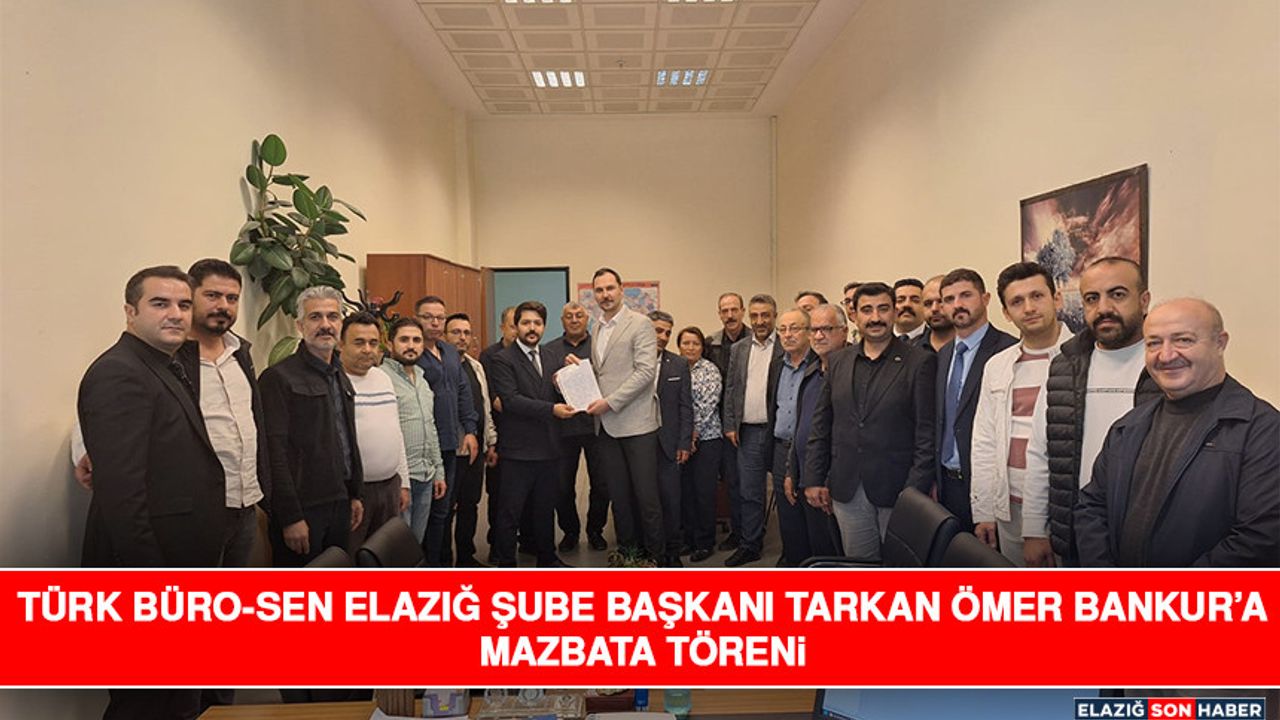 Türk Büro-Sen Elazığ Şube Başkanı seçilen Tarkan Ömer Bankur ve yönetim kurulu üyelerine mazbataları takdim edildi.