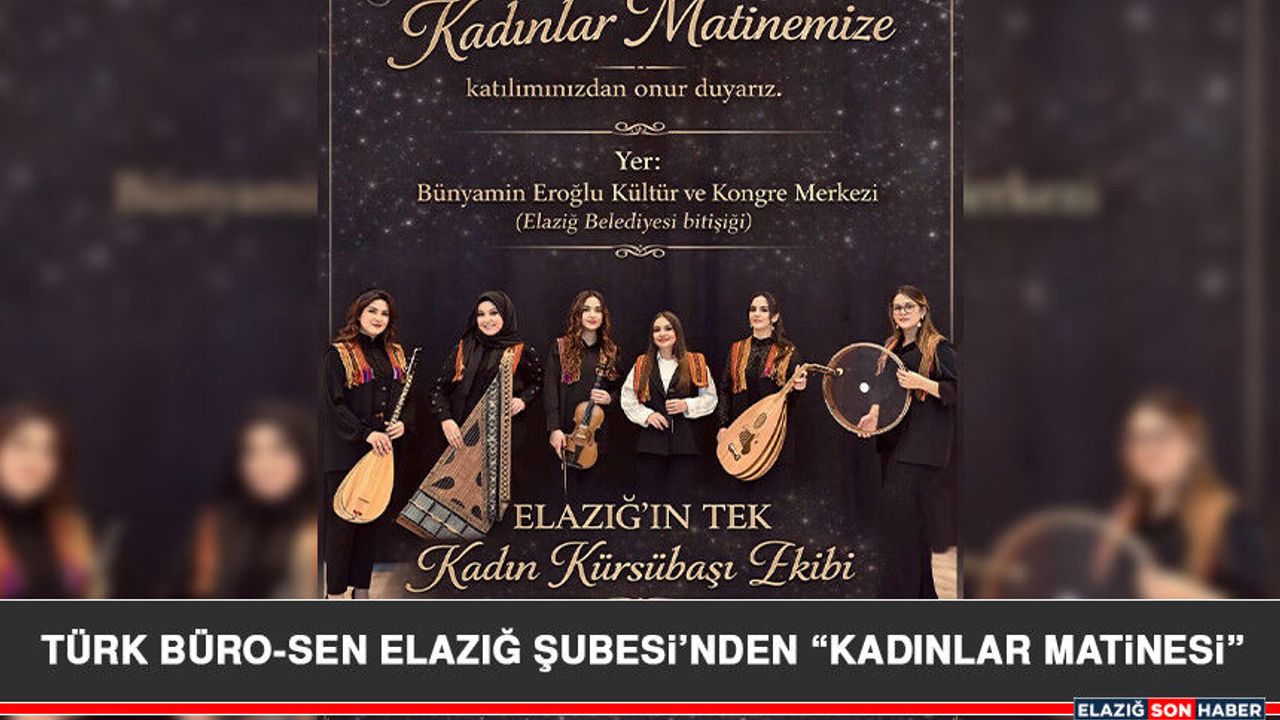 Türk Büro-Sen Elazığ Şubesi tarafından organize edilen “Kadınlar Matinesi” etkinliği, 29 Mart 2026 tarihinde saat 19.00’da gerçekleştirilecek.