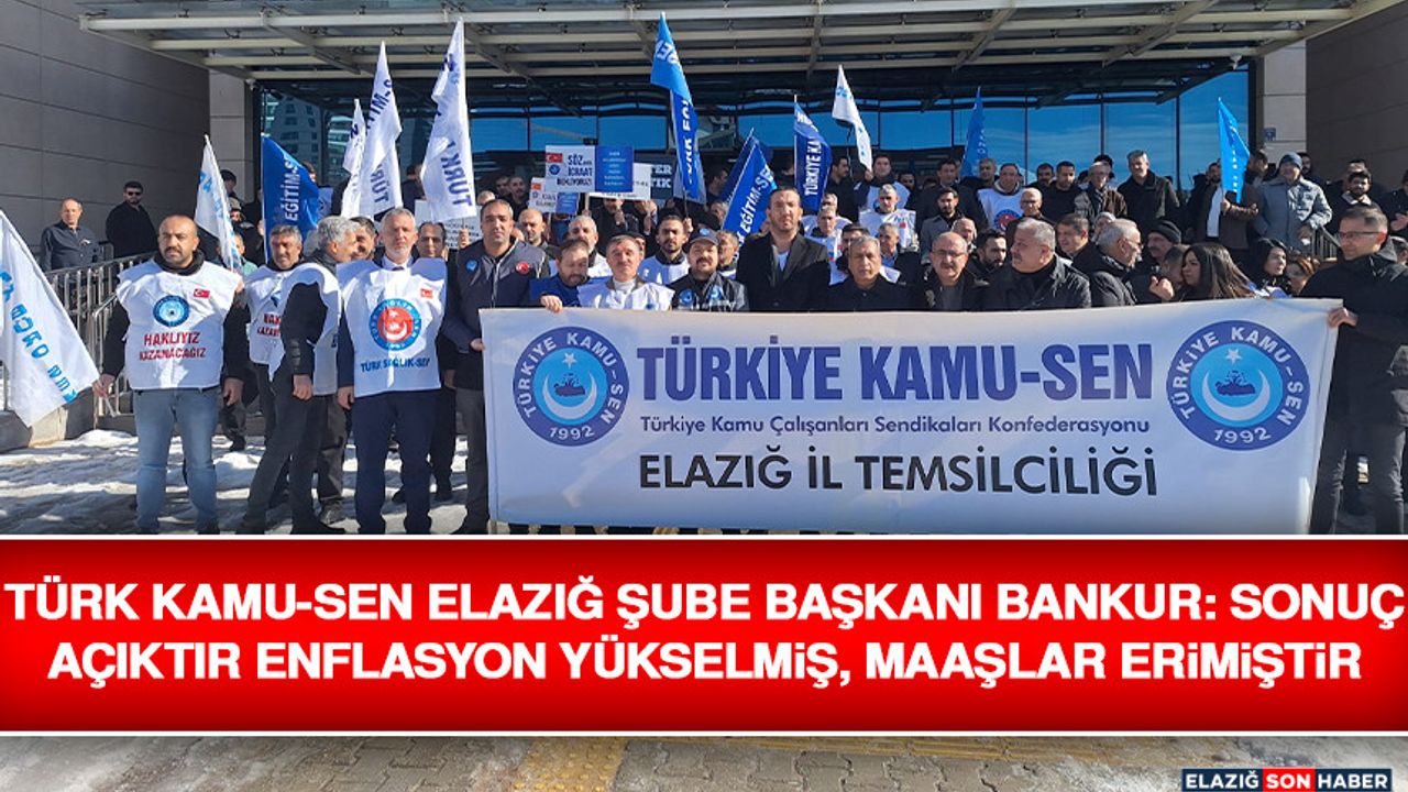 Türk Kamu-Sen ve Türk Büro-Sen Elazığ Şube Başkanı Tarkan Ömer Bankur ve üyeleri Elazığ Defterdarlığı önünde toplanarak artan vergilerle alakalı "Ücrette Hakkaniyet Vergide Adalet" konusuyla açıklama yaptılar.