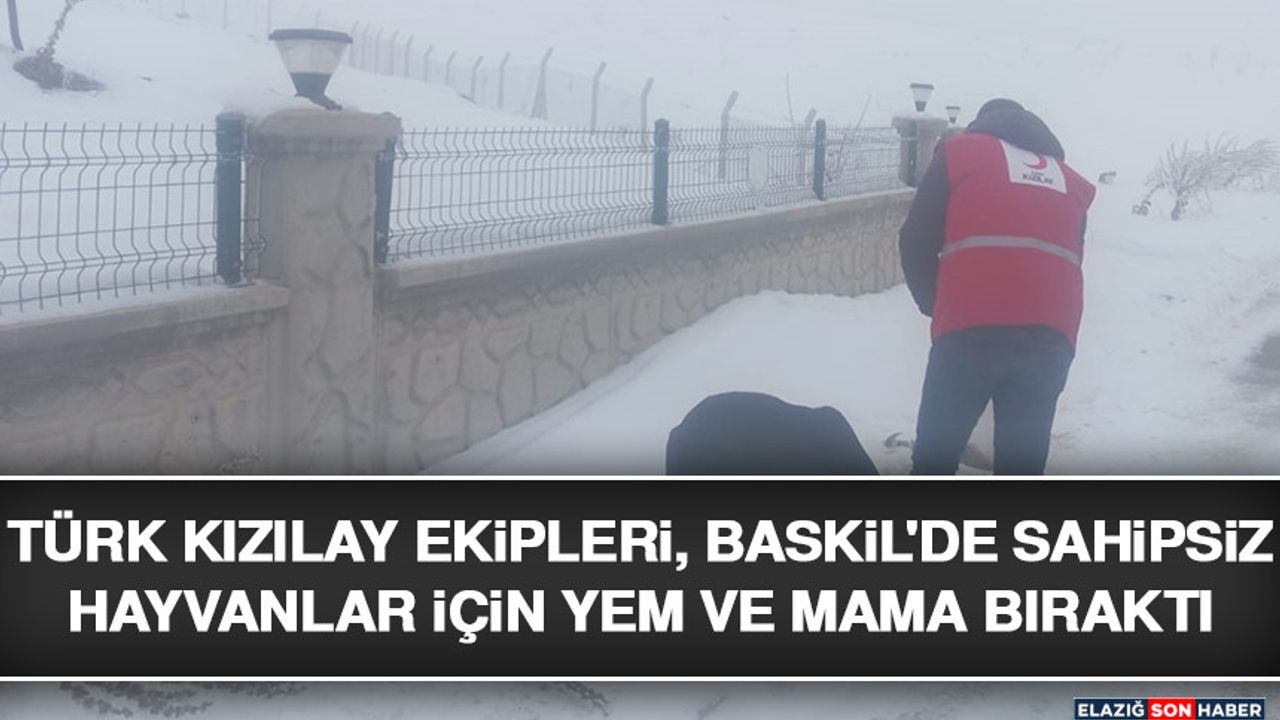 Türk Kızılay ekipleri, Elazığ'ın Baskil ilçesinde soğuk hava ve kar yağışı nedeniyle yiyecek bulmakta zorlanan sahipsiz hayvanlar için ilçe genelinde belirlenen noktalara yem ve mama bıraktı.