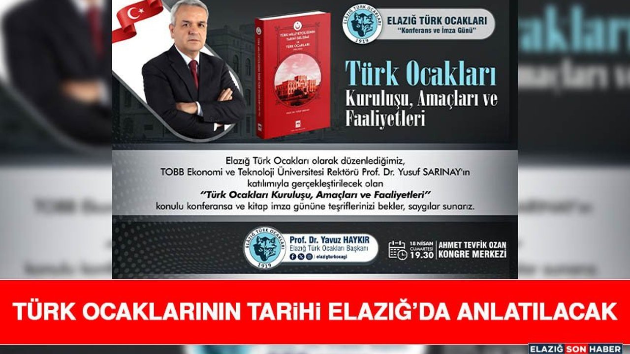 Elazığ Türk Ocakları tarafından organize edilen “Türk Ocakları Kuruluşu, Amaçları ve Faaliyetleri” konulu konferans ve imza günü gerçekleştirilecek. Etkinliğe konuşmacı olarak Yusuf Sarınay katılacak.