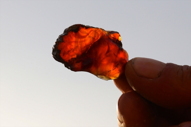"Çıkarılan yaklaşık 25 metreküp malzemenin içinden 100 kilogram civarında kehribar toplandı. Bunların içinde birkaç milimetreden, 40-50 santimetreye kadar ulaşan büyük kehribar blokları var. İşletmenin zorlukları var. Milimetrik boyutta çıkan yüzeyin arkasında daha büyük, daha modüler kehribar olabilir. Bunu önceden kestiremediğimiz için çok yavaş, sanki arkeolojik kazı yaparmışçasına hassasiyetle çalışmamız gerekiyor."
