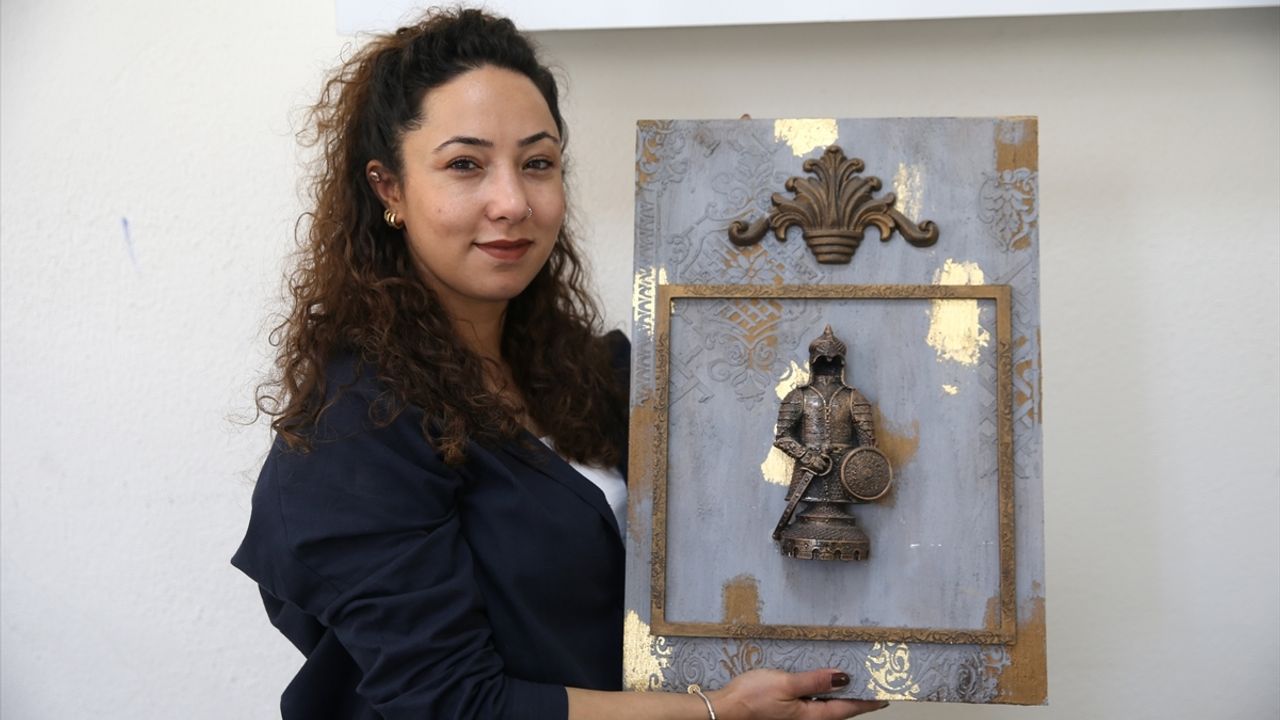 Usta öğretici Aysun Özbay'dan eğitim alan üniversite öğrencileri, 1071'de Türklere Anadolu'nun kapılarını açan Sultan Alparslan'ın zırhı ve atını simgeleyen hediyelik ürünler üretmeye başladı.