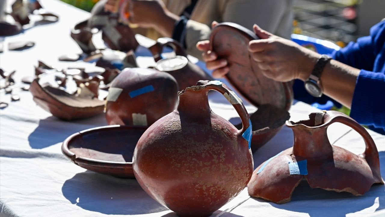 VAN (AA) - MESUT VAROL - Van'ın Tuşba ilçesindeki Ayanis Kalesi'nde yapılan kazılarda gün yüzüne çıkarılan tabak, çanak ve küp gibi seramik parçaları, akademisyenler ve öğrenciler tarafından yürütülen çalışmayla birleştirilerek eski haline getiriliyor.