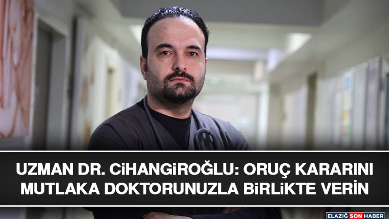 Oruç kararının mutlaka doktorla birlikte verilmesi gerektiğini belirten Uzm. Dr. Cihangiroğlu, " Ramazan ayının manevi huzuru hepimize şifa olsun. Özellikle tansiyon, şeker ,kalp yetmezliği , böbrek yetmezliği gibi kronik bir hastalığınız varsa, oruç kararını doktorunuzla birlikte vermeniz çok önemli. Uzun süren açlık, kan şekerinde düşüşlere veya tansiyonda dengesizliklere yol açabilir. İlaçlarınızın kullanım saatleri değişeceği için, doz ayarlaması gerekebilir. Özellikle insülin kullanan şeker hastaları ve sıvı kaybı yaşaması riskli olan ileri derecede kalp ya da böbrek hastaları için oruç tutmak ciddi riskler doğurabilir" dedi.