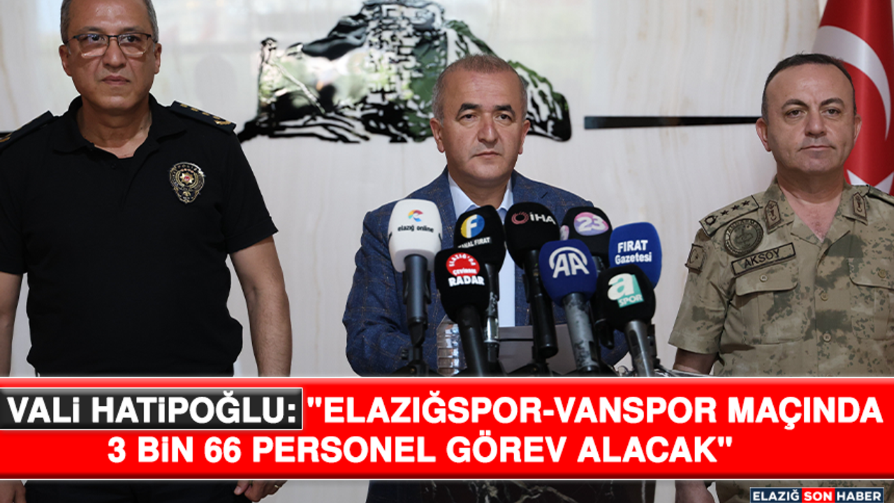 Nesine 2. Lig Play-Off 3. Tur rövanş maçında Elazığspor ile Vanspor FK yarın saat 20.00'de karşı karşıya gelecek. Maç öncesi Vali Numan Hatipoğlu alınan tedbir ve önlemler hakkında açıklamalarda bulundu. Vali Hatipoğlu'na, İl Emniyet Müdürü Adnan Karayel ve İl Jandarma Komutan Vekili Kıdemli Albay Mehmet Serkan Aksoy eşlik etti.