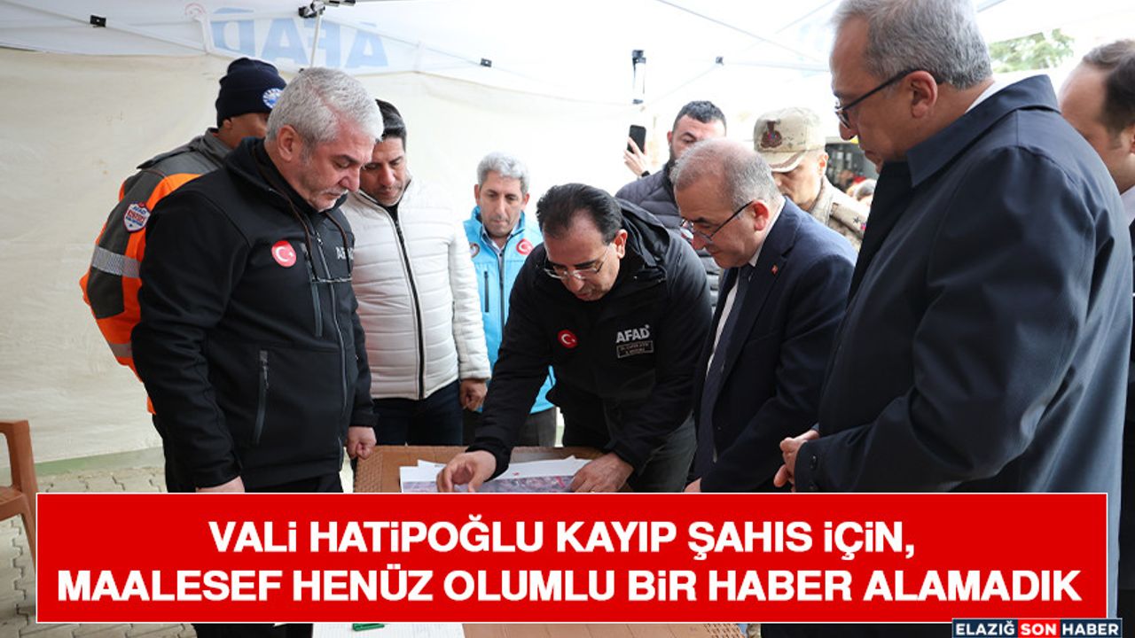 Burada açıklamalarda bulunan Vali Hatipoğlu, " Esentepe Mahallemizde kaybolan 74 yaşındaki İbrahim Kaya isimli vatandaşımızı arama çalışmalarımız devam ediyor. Maalesef henüz olumlu bir haber alamadık. Arama tarama faaliyetlerimiz bugün de 84 kişiyle sürüyor. Keban Baraj Gölü üzerinde emniyetimizin su altı birimi pek çok noktada araştırma yaptı. Bölgede teyakkuz halindeyiz ve vatandaşlarımıza duyurularımızı yaptık. İnşallah başka bir yere gitmiştir ve sağlık sıhhat içerisindedir diye dua etmekten başka şu an yapabileceğimiz bir şey yok. Ancak vatandaşımızı aramak için tüm çalışmalarımıza devam ediyoruz" dedi.