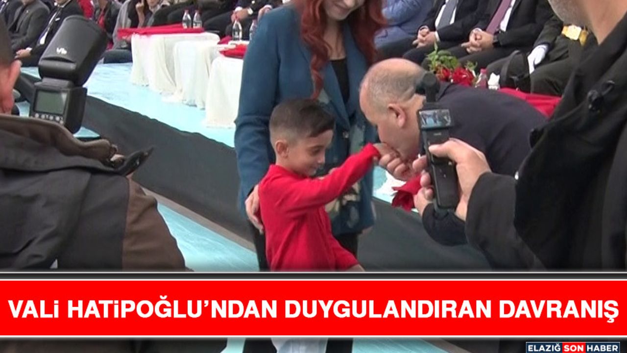Elazığ Valisi Numan Hatipoğlu, kendisine Türk Bayrağı hediye eden minik bir öğrencinin elini öperek teşekkür etti.