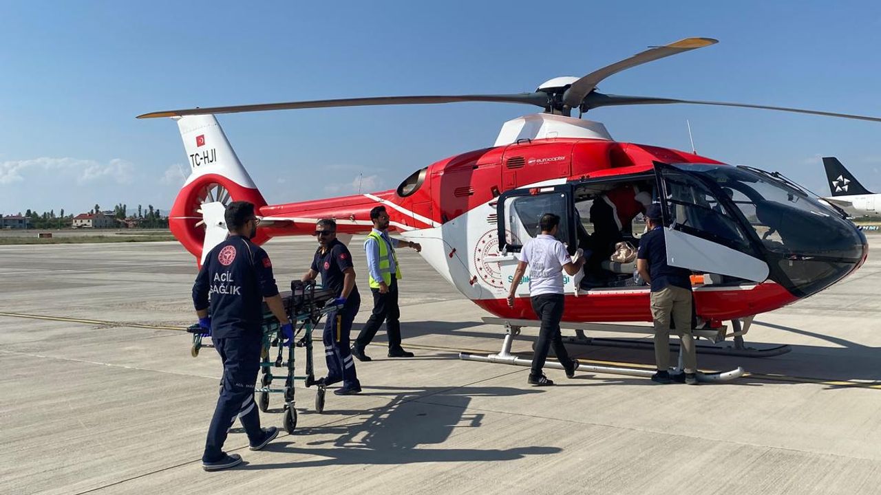 Bunun üzerine ilçeye yönlendirilen ambulans helikoptere alınan hasta, Van Eğitim ve Araştırma Hastanesi'ne nakledildi.