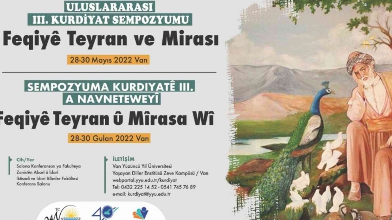 Van Büyükşehir Belediyesi ve YYÜ ortaklaşa Kürt edebiyatının önemli şairlerinden biri olan Feqiyê Teyran anısına sempozyum düzenliyor. 28 - 30 Mayıs tarihleri arasında yapılacak sempozyumda Kürt edebiyatı, Feqiye Teyran’ın Kürt edebiyatındaki yeri ve önemi konuları konuşulacak. Sempozyuma Türkiye, İran ve Irak’tan 60 yakın akademisyen katılacak.
