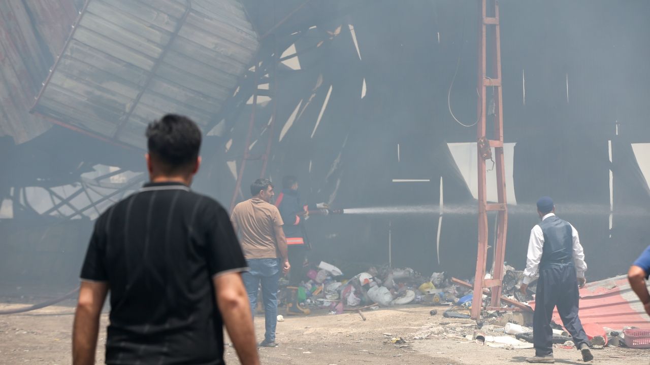 Hurdacılar Sanayi Sitesi'ndeki atık plastik malzemelerinin toplandığı geri dönüşüm tesisinde henüz belirlenemeyen nedenle yangın çıktı.